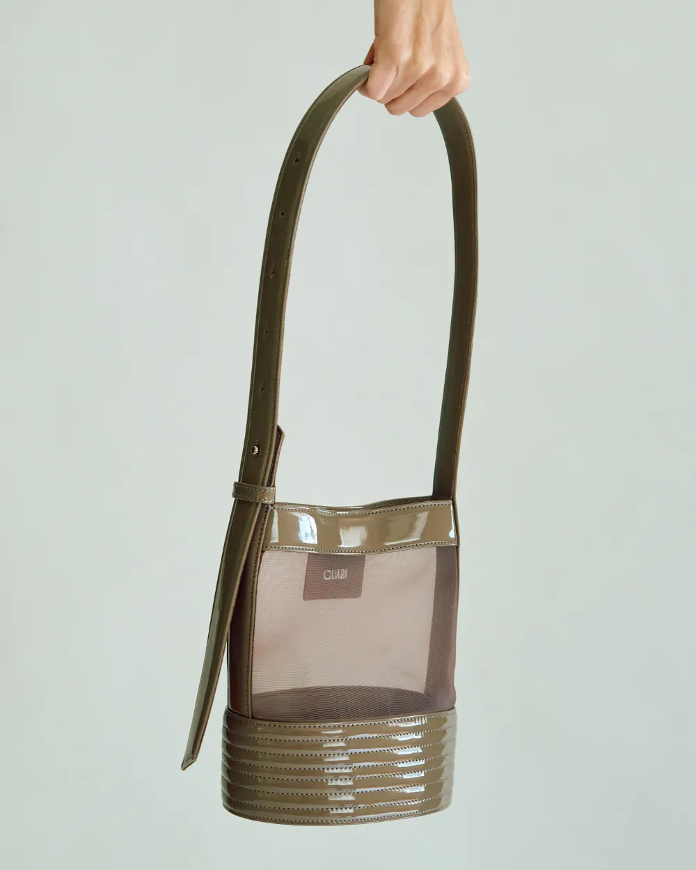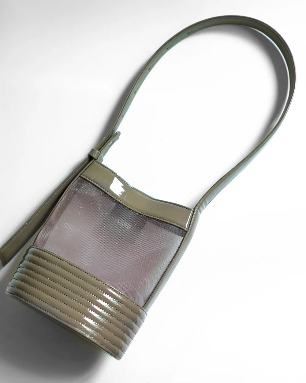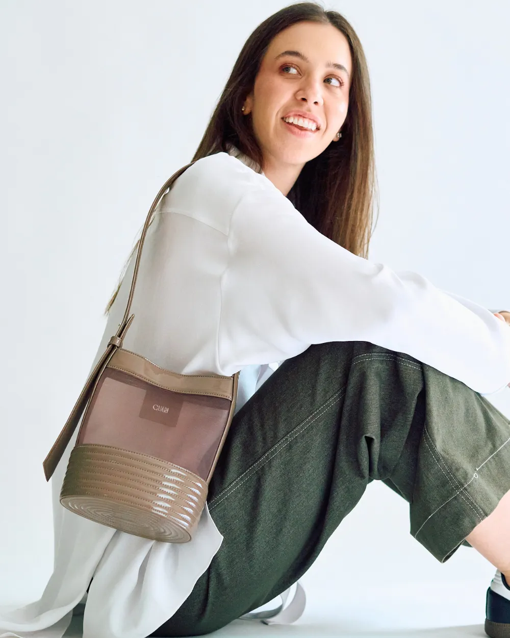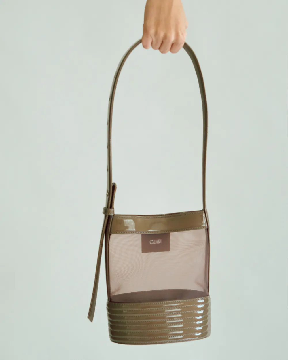 classic with a twist! a bolsa carlota promete ser um clássico no closet de qualquer um! em formato bucket, ela é feita em telinha transparente com vinil.