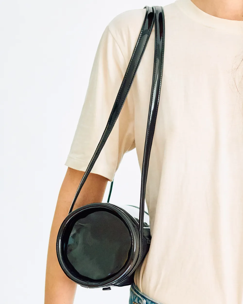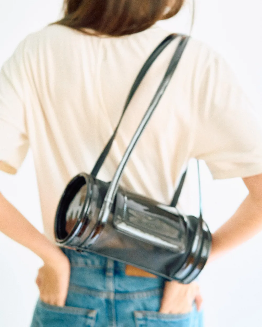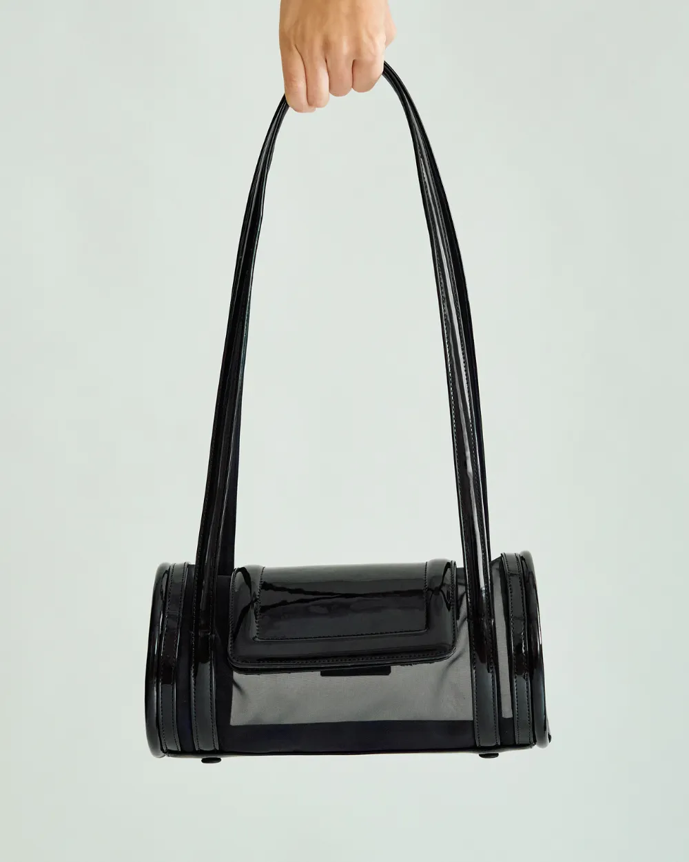 um barrilzinho para adicionar ao seu closet! <3 nossa bolsa eda, em formato barrel, é feita cuidadosamente em telinha transparente com vinil. descolada e super cool é uma opção que promete te acompanhar do ao escritório ao happy hour!