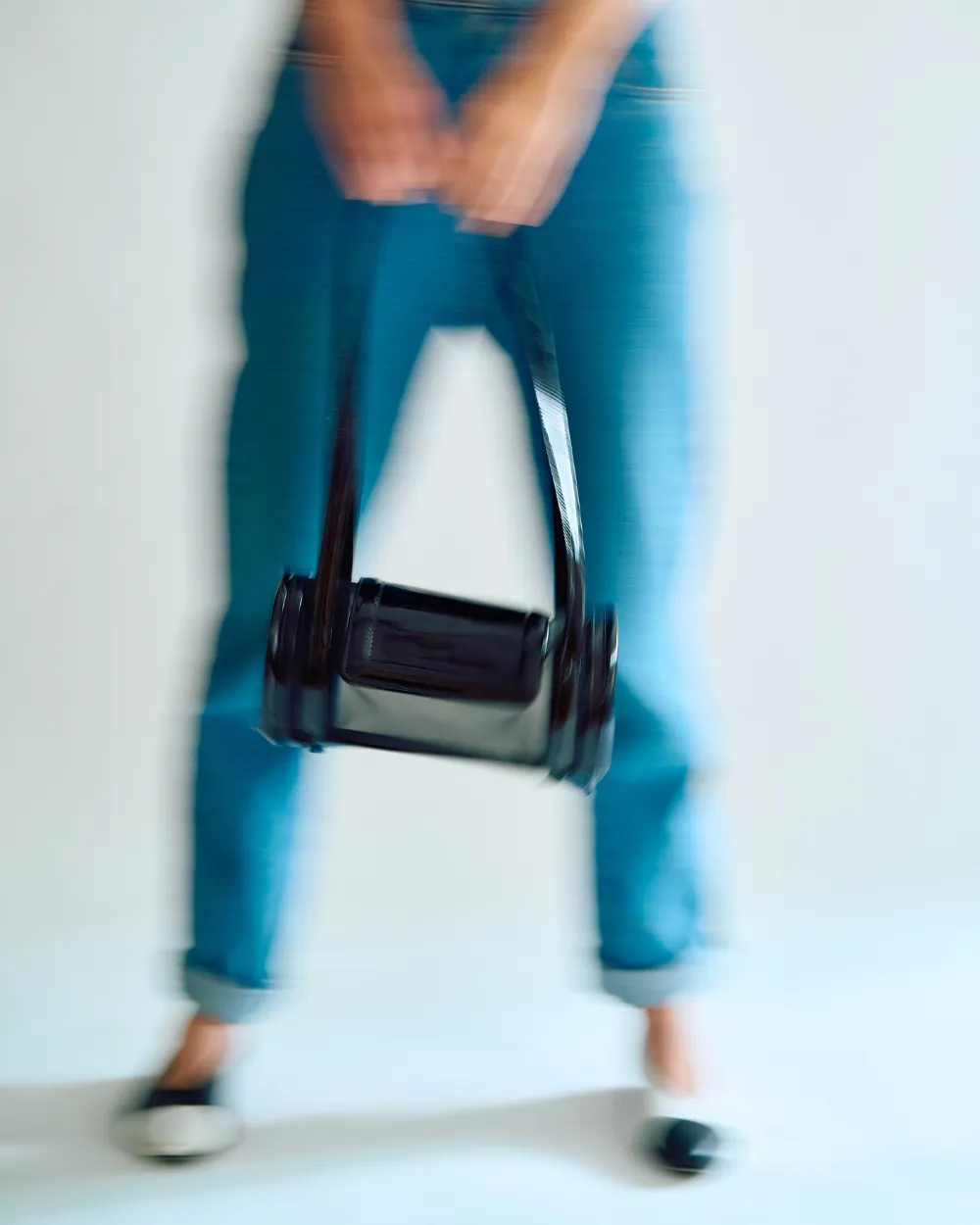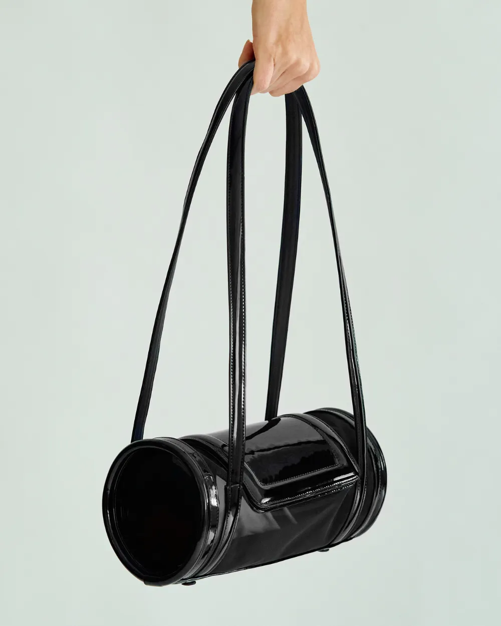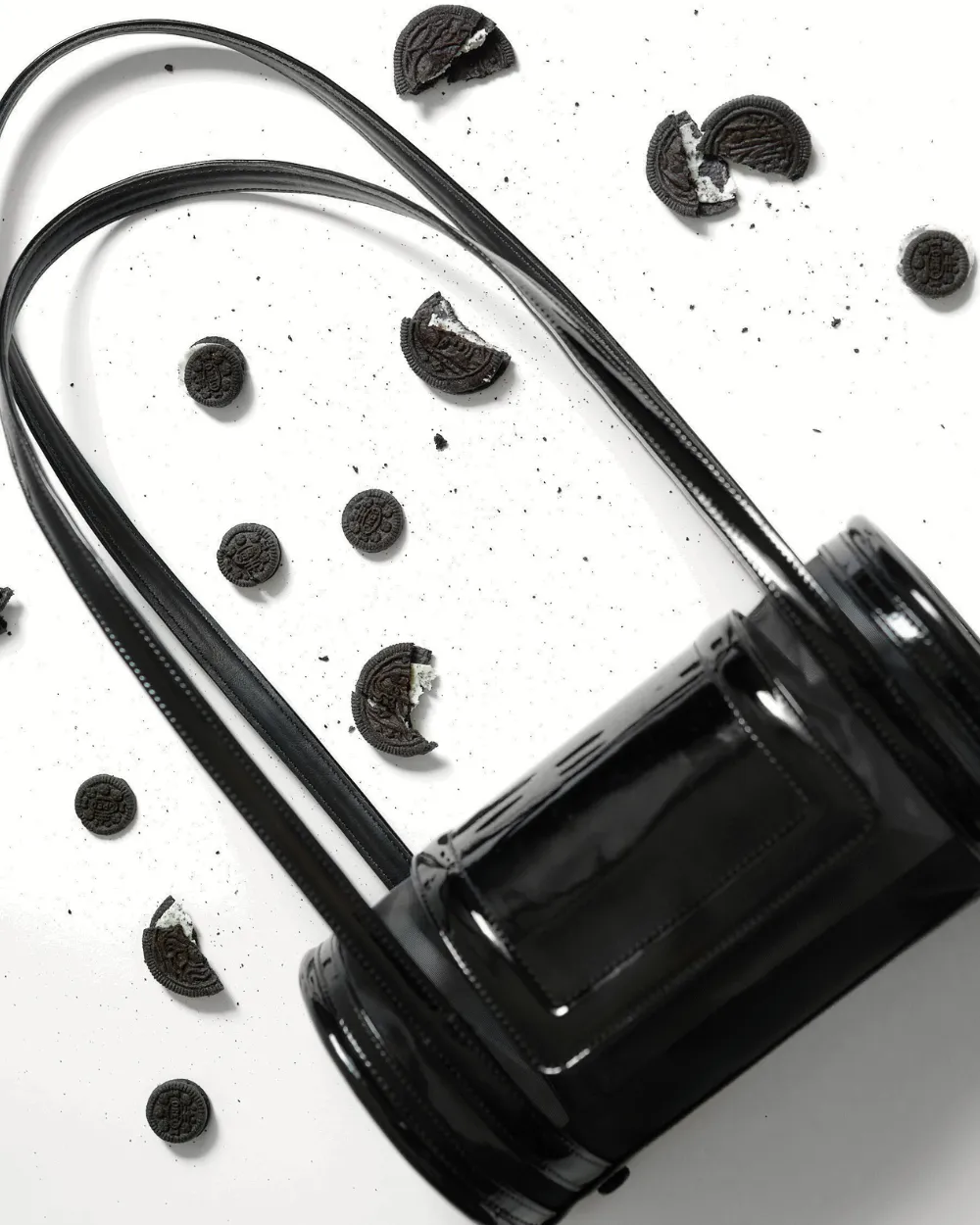 um barrilzinho para adicionar ao seu closet! <3 nossa bolsa eda, em formato barrel, é feita cuidadosamente em telinha transparente com vinil. descolada e super cool é uma opção que promete te acompanhar do ao escritório ao happy hour!