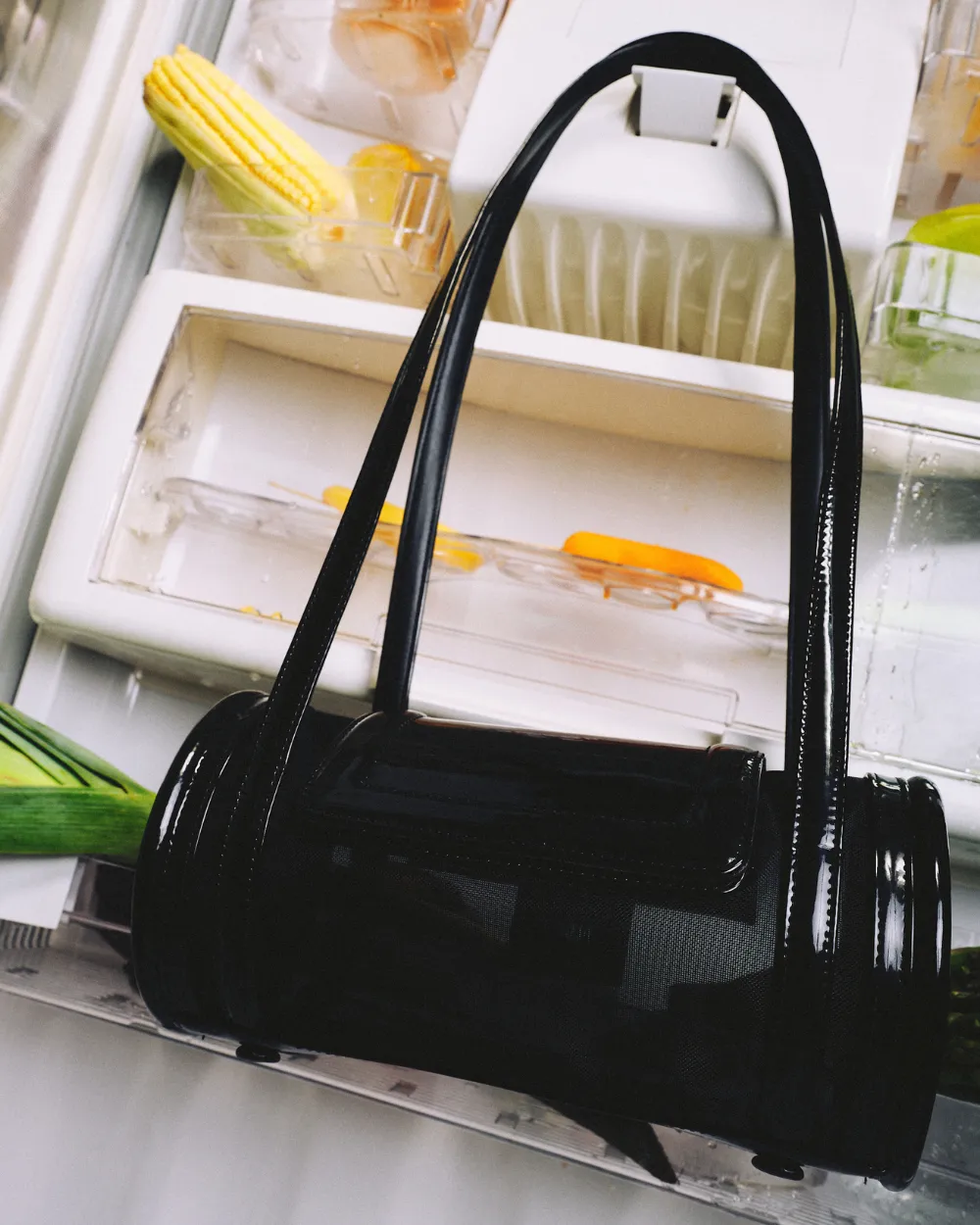 um barrilzinho para adicionar ao seu closet! <3 nossa bolsa eda, em formato barrel, é feita cuidadosamente em telinha transparente com vinil. descolada e super cool é uma opção que promete te acompanhar do ao escritório ao happy hour!